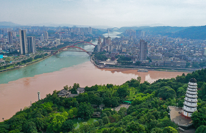 四川宜賓,“萬里長江第一城”。岷江和金沙江在此交匯,長江始稱“長江”。遠山疊翠,江水滔滔,岸邊“共抓大保護?不搞大開發”幾個大字格外醒目。