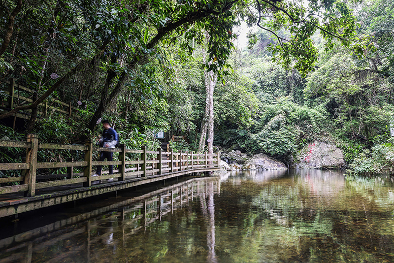 游客在海南熱帶雨林國家公園五指山片區的仙女潭游覽(2022年5月17日攝)。新華社記者 張麗蕓 攝